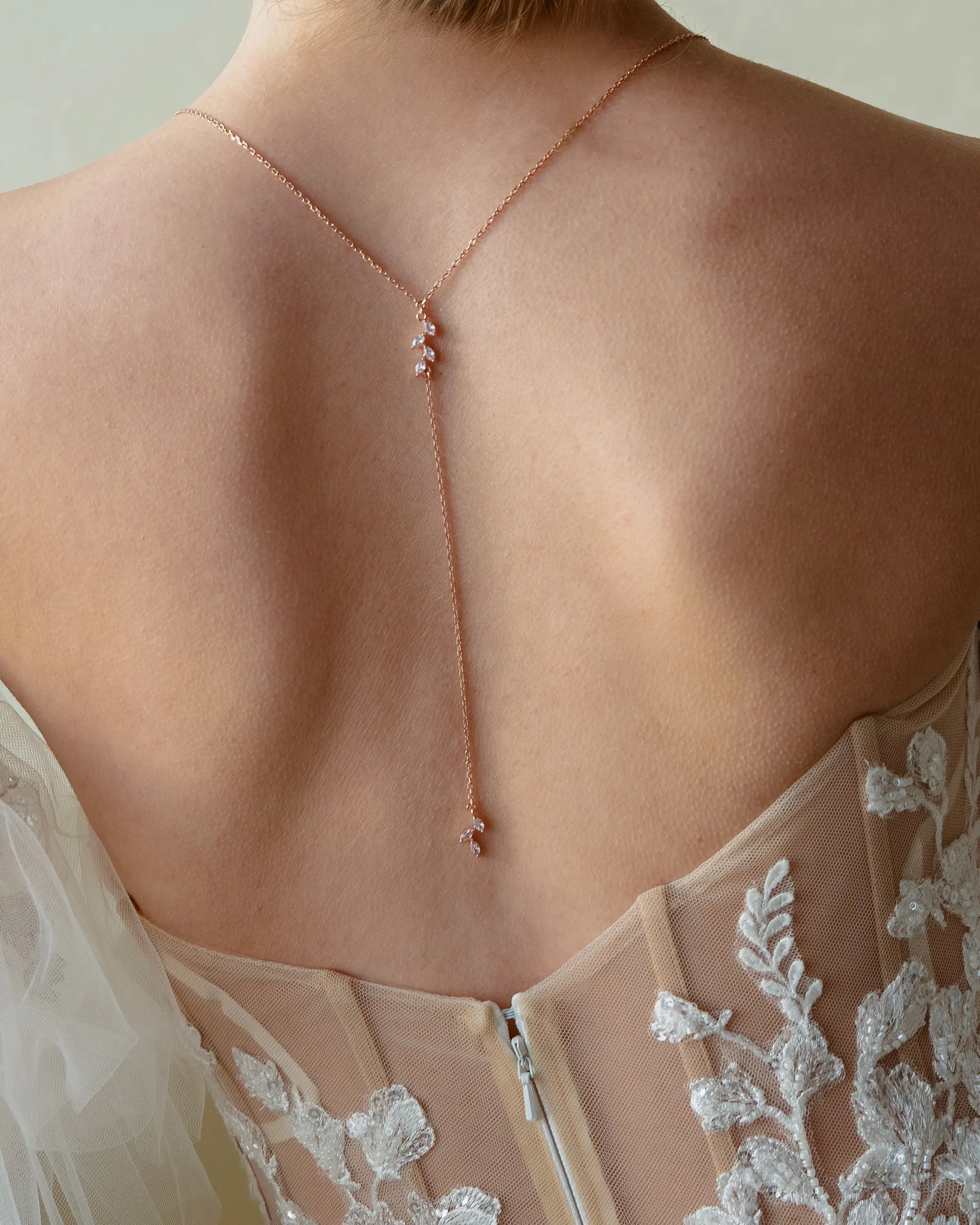 Jedes Brautkleid und jede Braut ist einzigartig – deshalb bieten wir unsere Halsketten in unterschiedlichen Längen und Farben an. Ob für ein tief ausgeschnittenes Dekolleté, ein hochgeschlossenes Kleid oder einen schlichten Look – Unsere Ketten lassen sich harmonisch auf Schnitt, Stoff und Stil des Kleides abstimmen und sorgen für ein ausgewogenes Gesamtbild.
