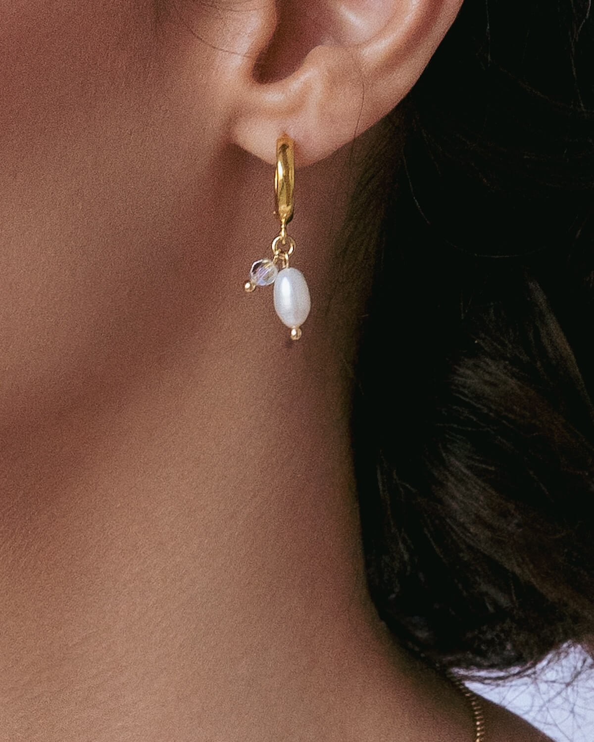 Unsere Creolen ALEXIS vereinen Glitzerdetails mit der zeitlosen Schönheit von echten Süßwasserperlen. Der perfekte Ohrschmuck für die Braut, die sich ein modernes Schmuckstück mit feinen Details wünscht. Hergestellt aus 925er Sterling Silber bieten die Creolen eine lange Lebensdauer sowie einen angenehmen Tragekomfort.