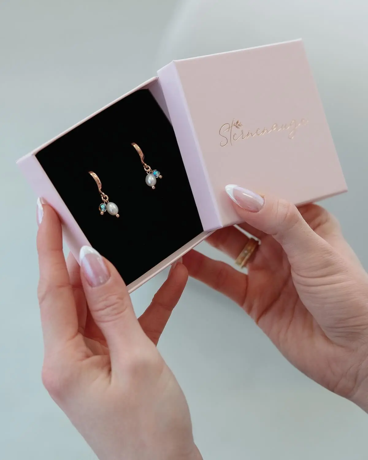 Jedes Schmuckstück von Sternenauge wird in einer hübschen Schmuckbox geliefert. Hier sind deine Schätze gut geschützt, wenn du sie nicht trägst. Um lange Freude an deinem Schmuck zu haben, solltest du deine Ohrringe zum Sport, Duschen und Schlafen ablegen.