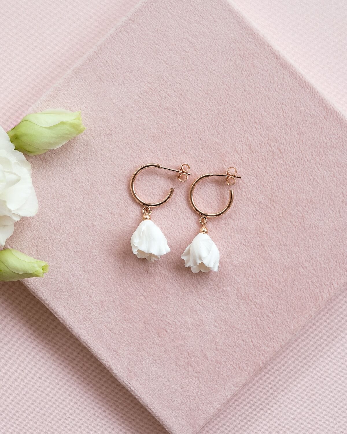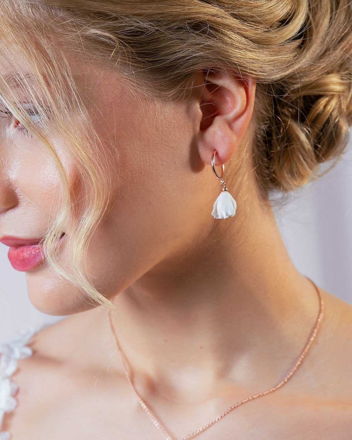 Unsere LEXI Ohrstecker in Creolenform verkörpern Stil und zeitlose Eleganz. Sie bestehen aus 925er Sterling Silber und zeichnen sich durch ihr filigranes Design aus. Sie sind die ideale Wahl für Bräute, die an ihrem besonderen Tag ein florales Accessoire tragen möchten, das ihren Brautlook zart und feminin unterstreicht.