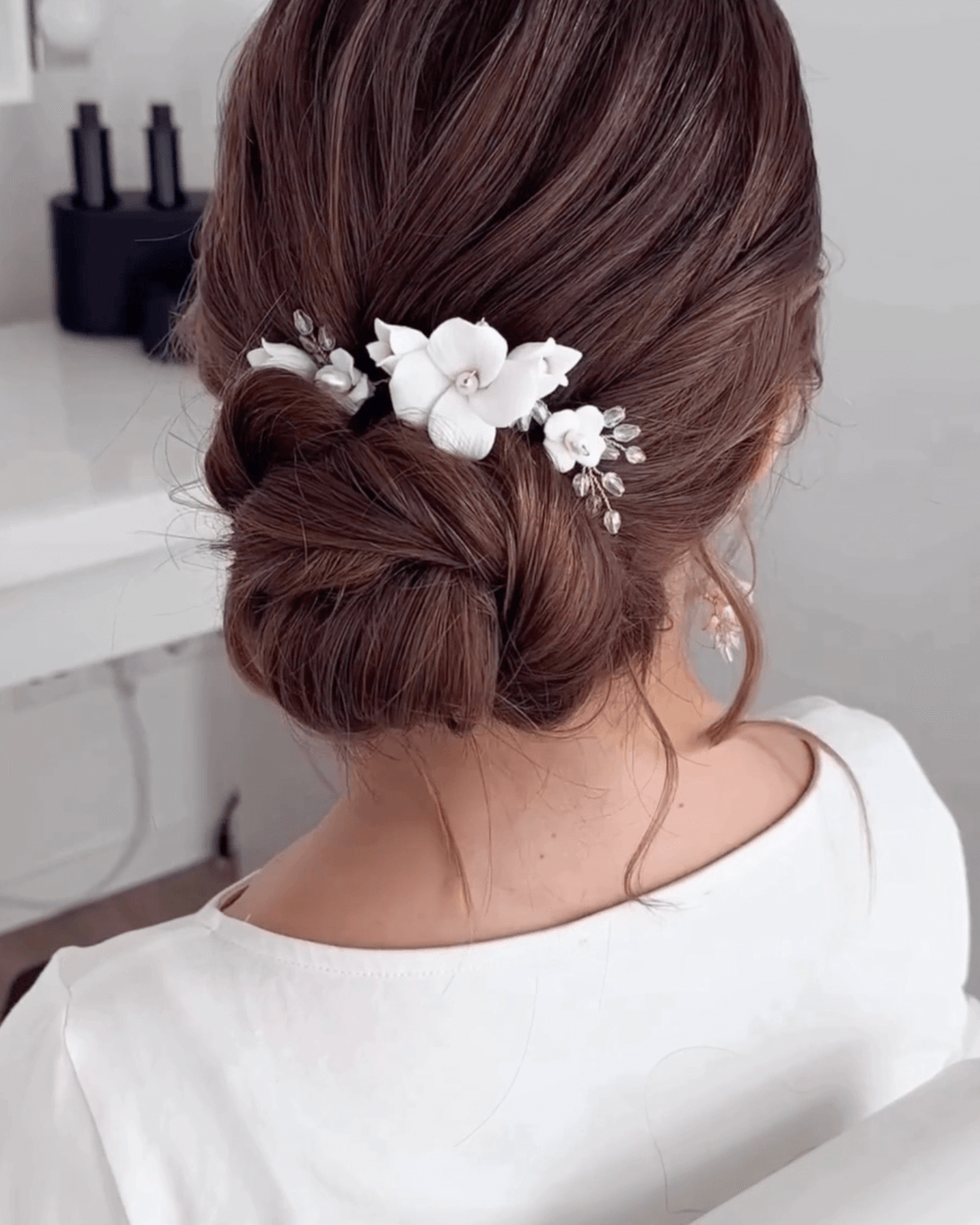 Unsere Haarbänder sind so gestaltet, dass sie sich schnell und unkompliziert in die Frisur einfügen lassen. Zum einen werden sie sehr leicht und biegsam angefertigt, damit sie sich der Frisur und individuellen Kopfform optimal anpassen lassen. Zum anderen sind sie mit kleinen Schlaufen versehen, mit denen sie mit Hilfe von Haarnadeln in der Brautfrisur befestigt werden können. Für einen noch besseren Halt können zusätzlich kleine Nädelchen in die Zwischenräume gesetzt werden. So hält dein Haarband die komplette Hochzeit über an Ort und Stelle ohne zu verrutschen.