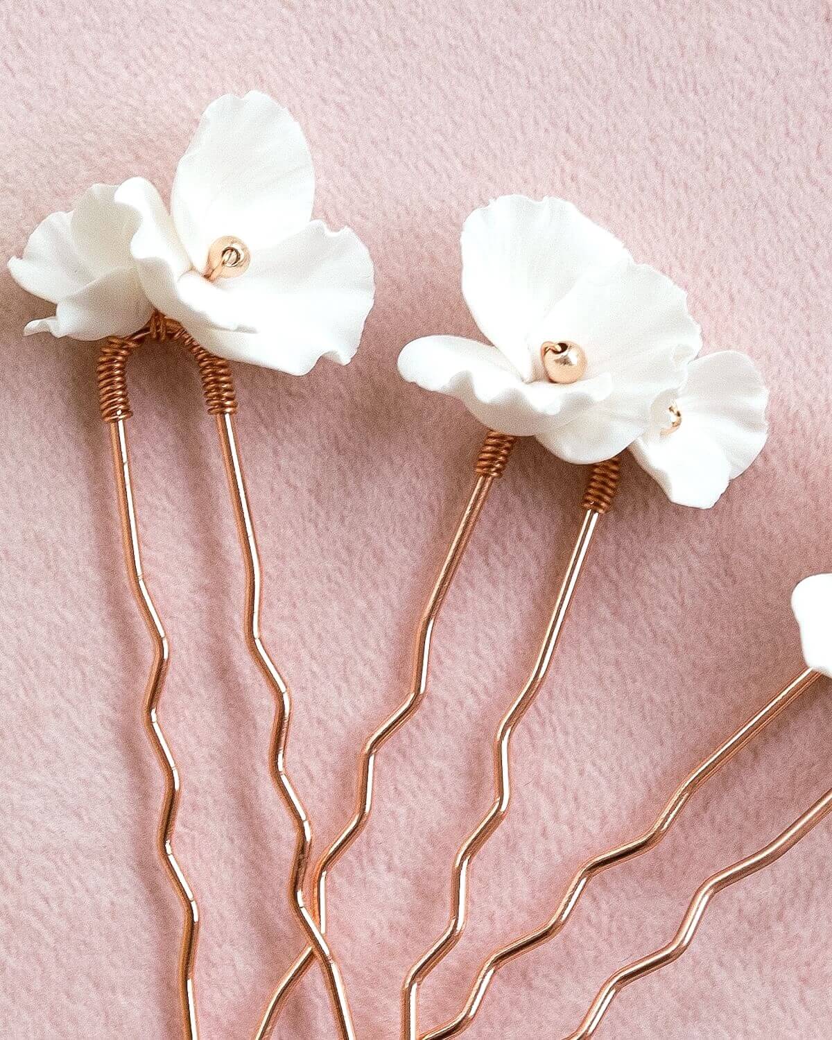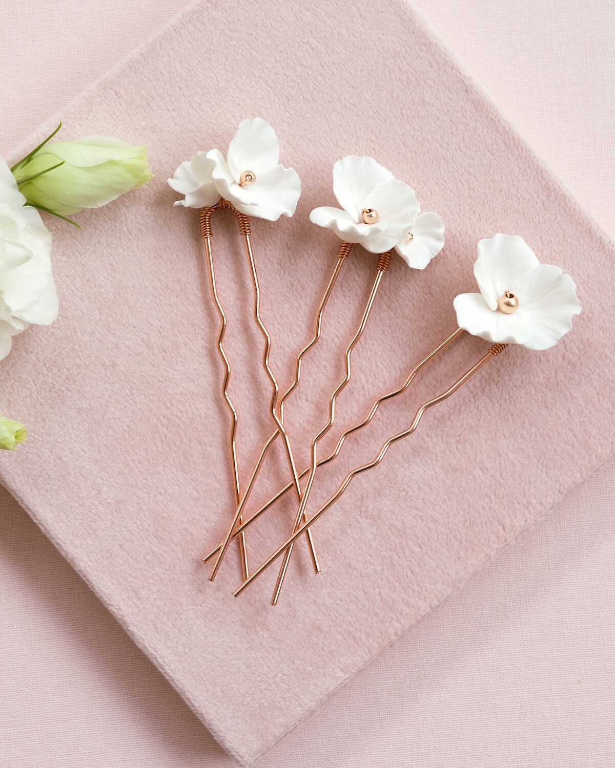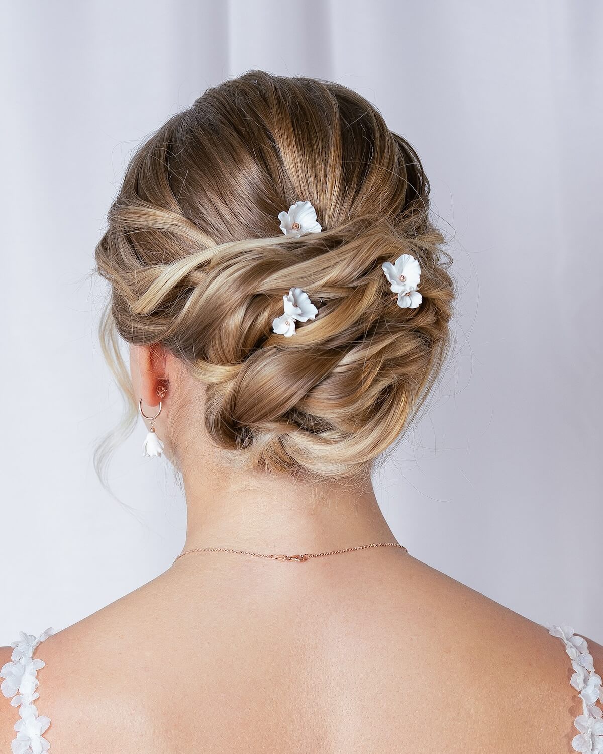 Unser Haarnadel-Set LEXI ist mit liebevoll von Hand gefertigten Blumen gestaltet. Ideal für Hochzeitsfrisuren, bietet das 3-teilige Set vielseitige Styling-Möglichkeiten, um die perfekte Brautfrisur für deinen großen Tag zu kreieren. Mit ihrer zarten Schönheit passen sie sowohl zu klassischen als auch zu romantischen und modernen Brautkleidern.