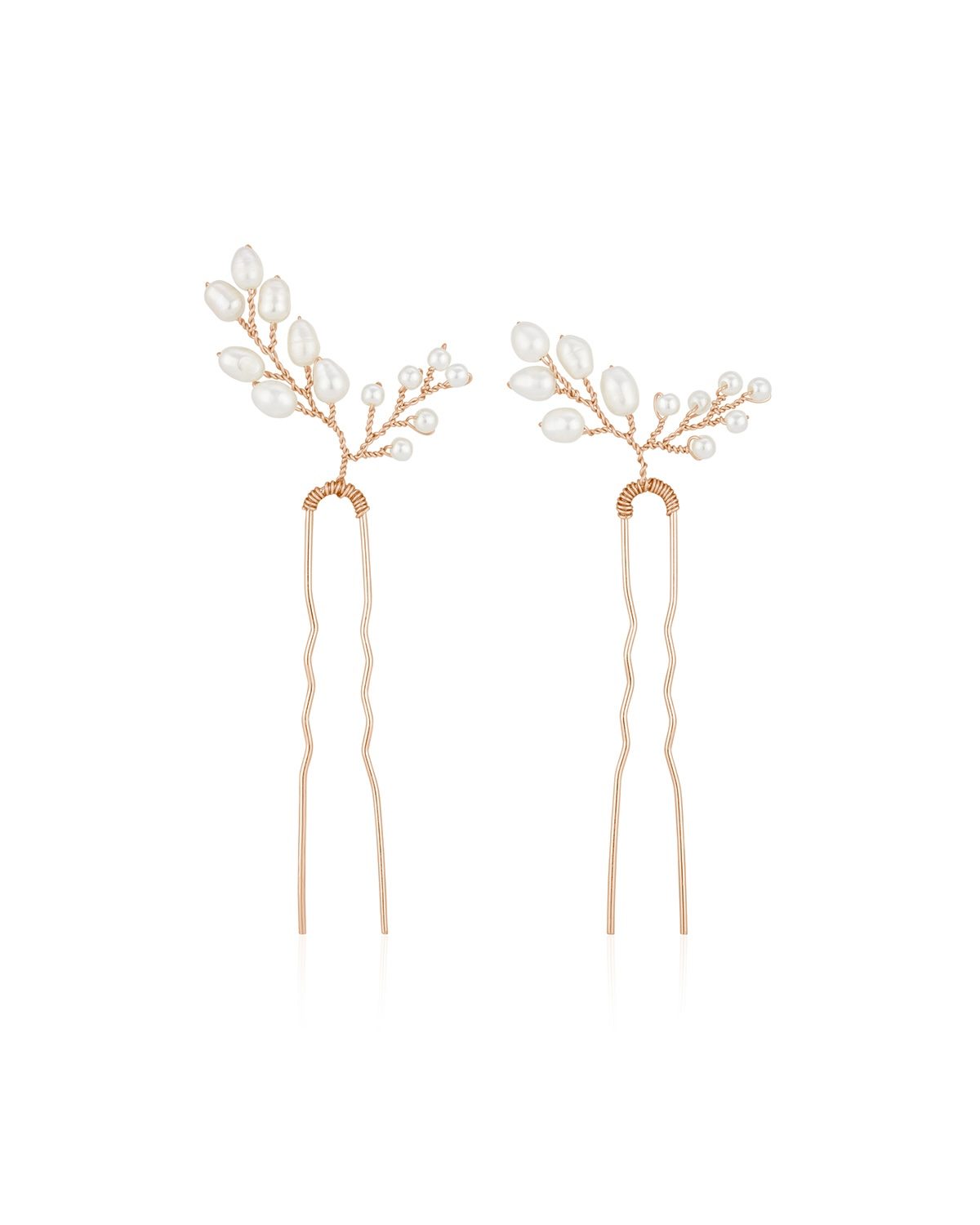 Unsere MILA Haarnadeln mit Perlen sind in einem filigranen Zweig-Design gestaltet. Dieser wunderschöne Haarschmuck passt perfekt zu den aktuellen Brautkleidern und verleiht deinem Brautlook eine stilvolle Note. Ideal, um deine Brautfrisur wunderschön in Szene zu setzen.