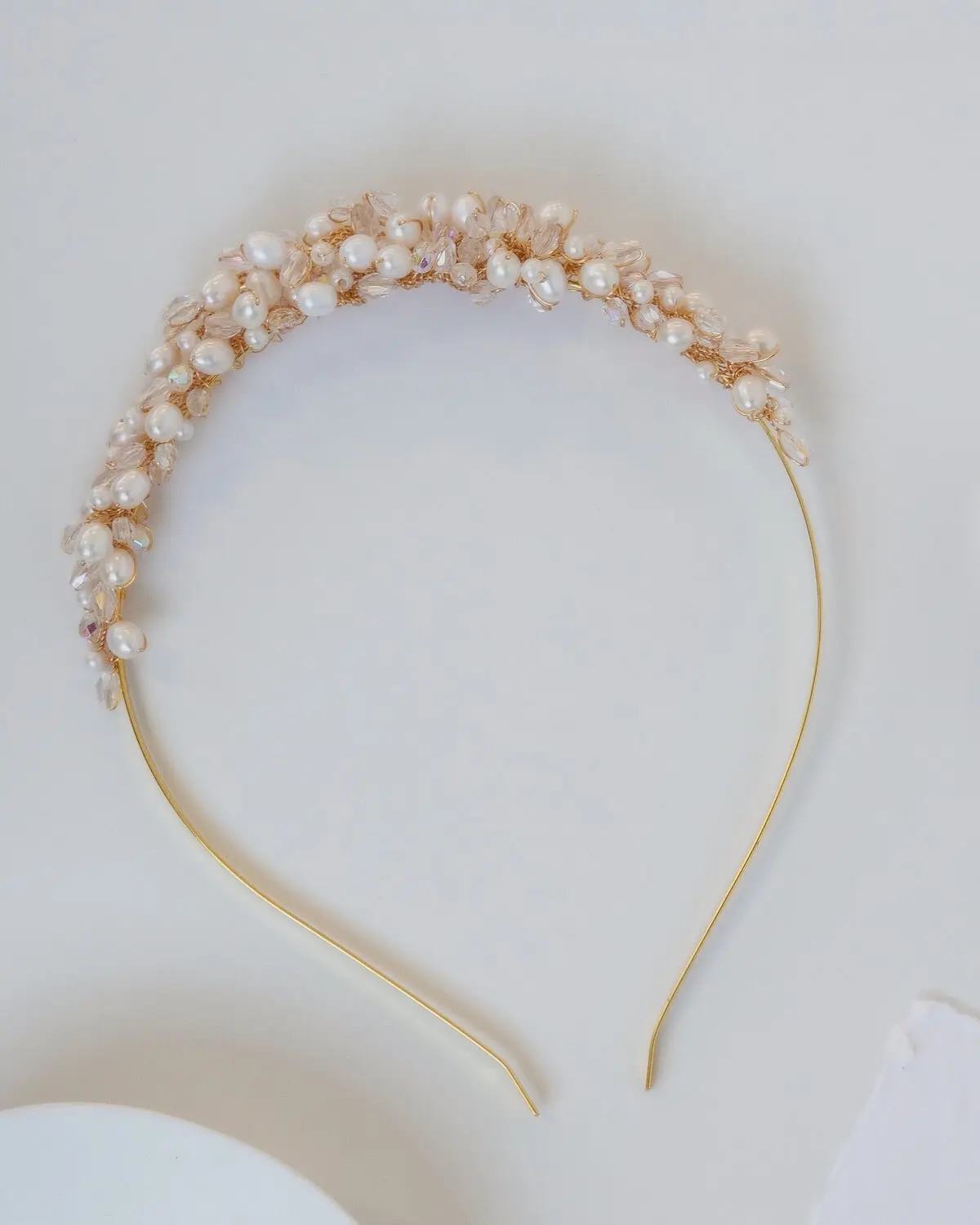 Dieser in liebevoller Handarbeit gefertigte Haarreif verleiht dir einen edlen Look für deinen großen Tag. Die Kombination aus echten Süßwasserperlen, kleinen Glasperlen und glitzernden Glaskristallperlen fängt das Licht auf zauberhafte Weise ein und sorgt für einen subtilen Glamour. Dabei ist er so leicht und angenehm zu tragen, dass du ihn den ganzen Hochzeitstag über kaum bemerken wirst.