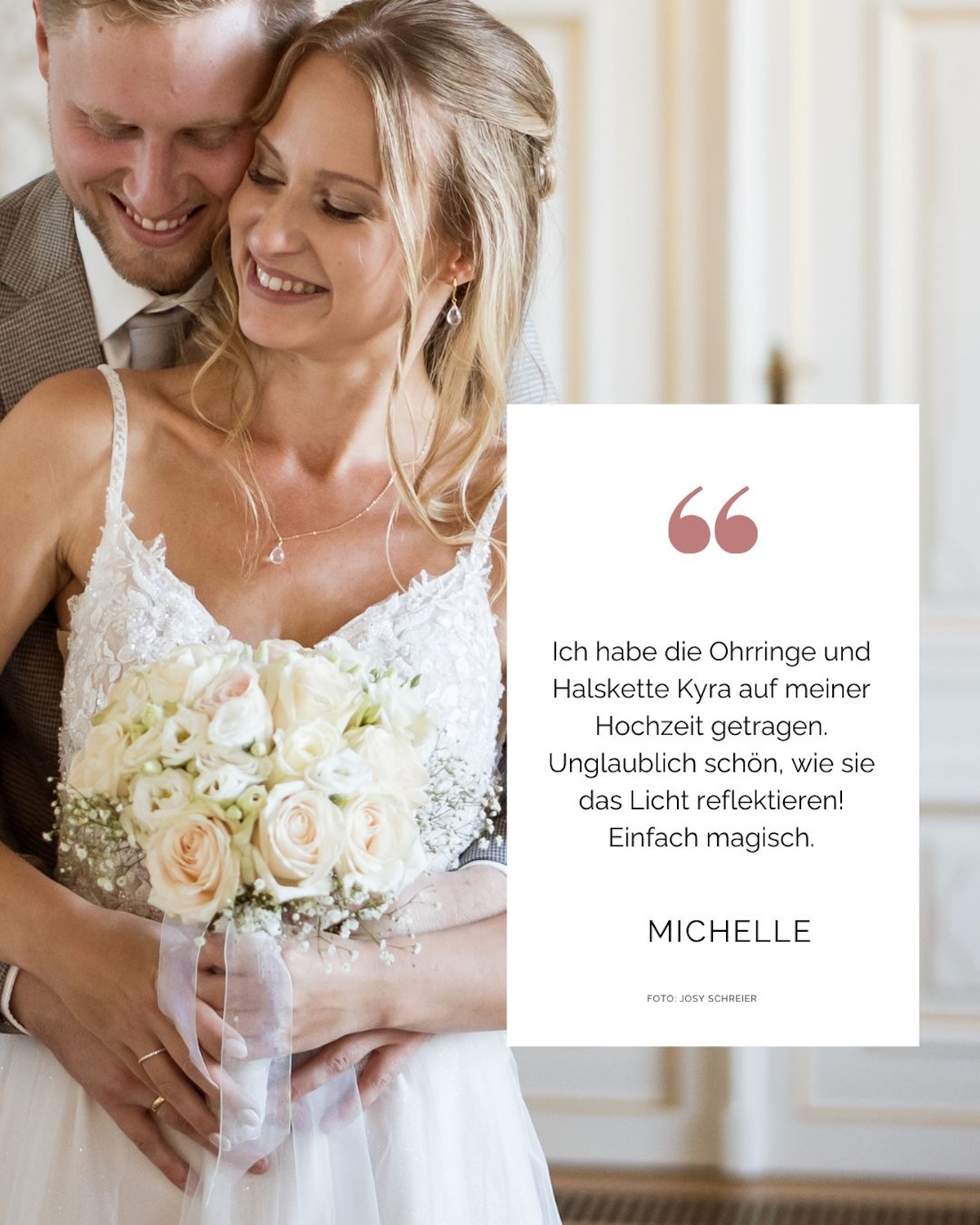 Der Schmuck ist sehr schön und passt perfekt zu meinem Hochzeitskleid und auch zu mir. Ich bin super glücklich.
