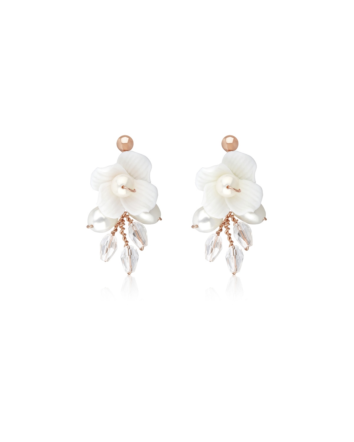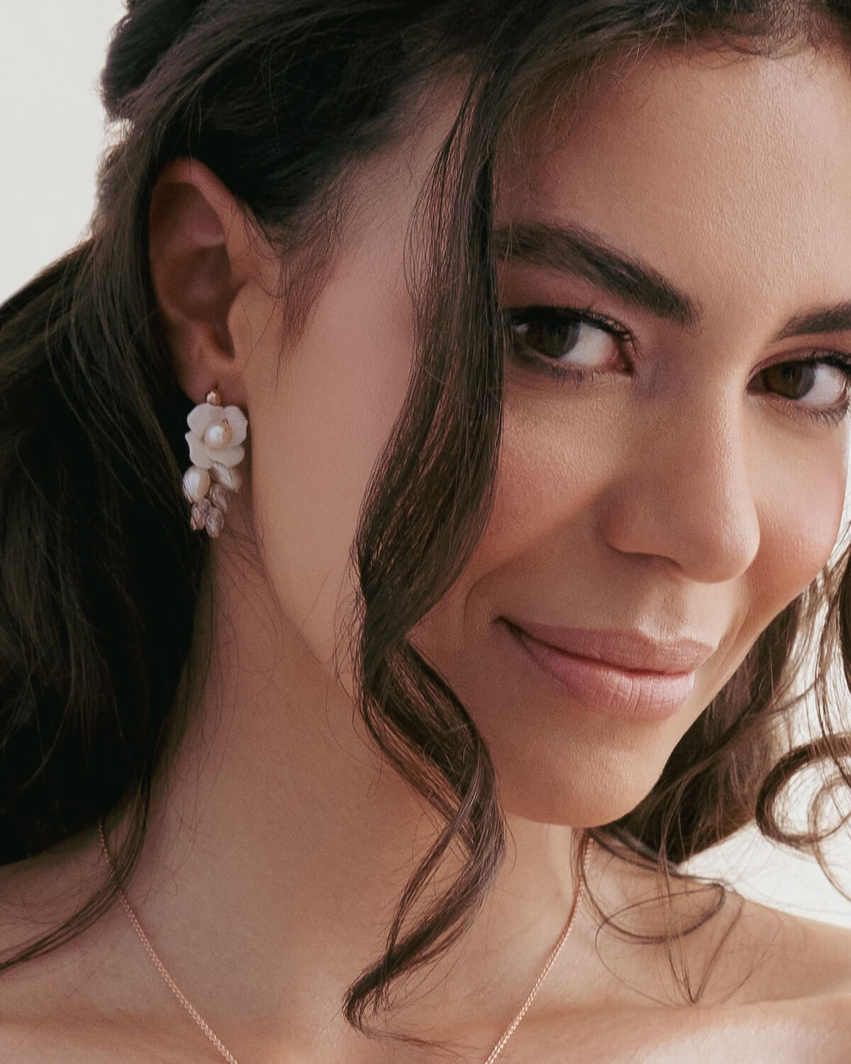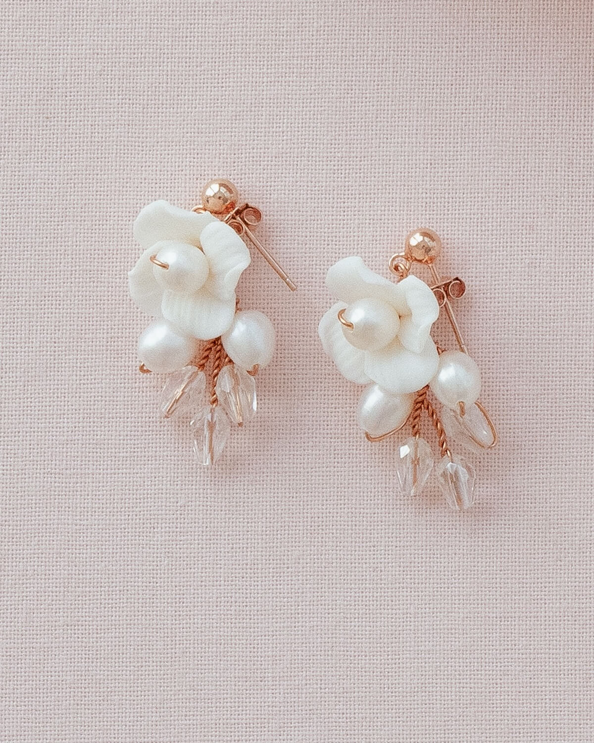 Entdecke unsere Ohrringe ALBA – ein zarter Ohrschmuck mit echten Süßwasserperlen, glitzernden Glaskristallperlen und filigraner Keramikblüte. Die Ohrstecker aus 925er Sterling Silber verleihen deinem Brautlook einen Hauch von Romantik und Raffinesse. Perfekt für deinen besonderen Tag.