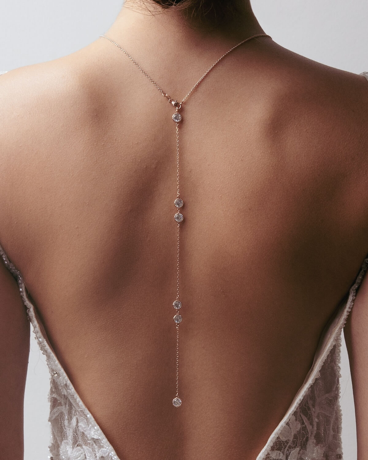 Ich bin zwar keine Braut, habe aber für einen Ball ein schönes Abendkleid mit Rückenausschnitt gekauft. Die STELLA Kette mit Rückeneinhänger war perfekt dazu. Wunderschön!