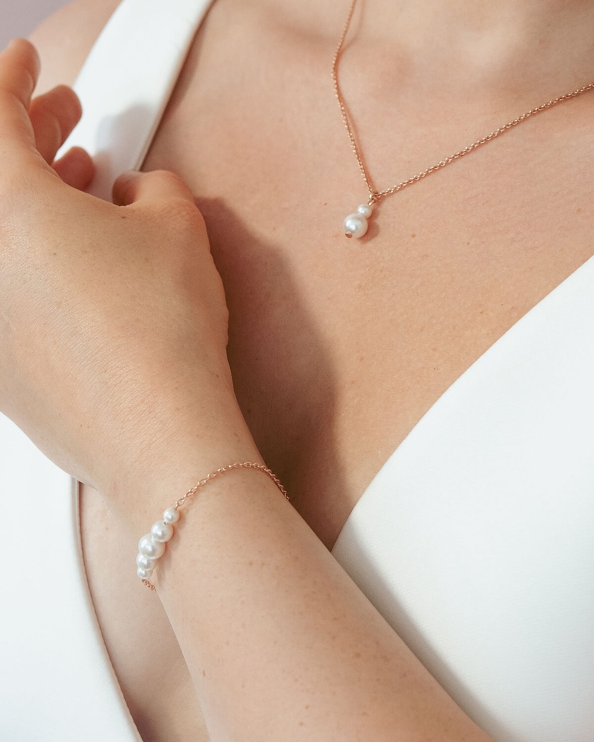 Unser Schmuck-Set ANNOUK verleiht jedem Brautlook eine stilvolle und moderne Note. Die schimmernden Muschelperlen sind das HerzstĂĽck der Schmucklinie und strahlen mit durchdachten Designs Eleganz und Raffinesse aus – perfekt fĂĽr die modebewusste Braut.